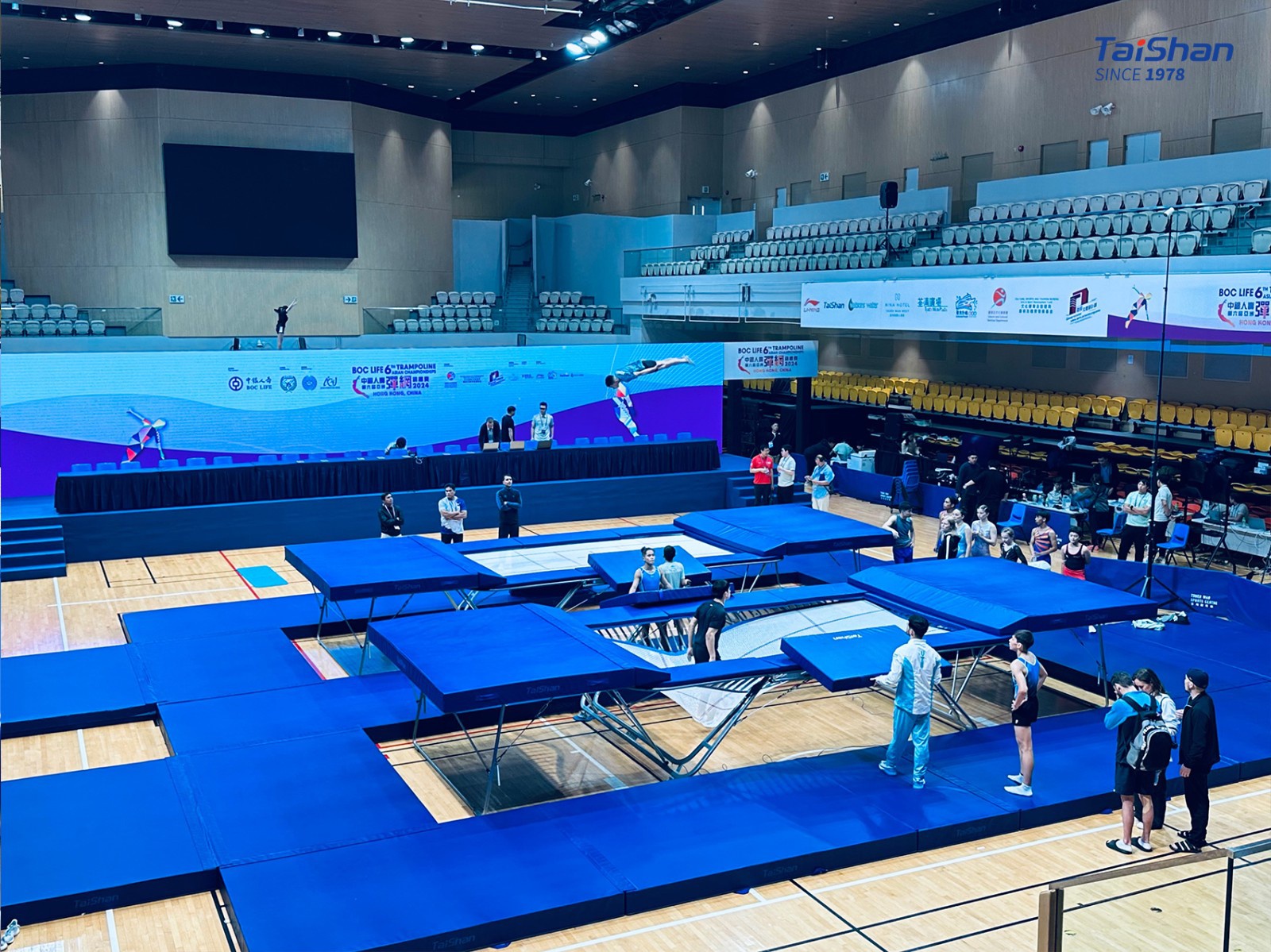 In order to ensure the excellent performance of gymnasts, Taishan Sports’ professional service team went to Hong Kong in advance to prepare for the installation and debugging of the competition venues. The state-of-the-art gymnastics equipment provided by Taishan Sports will shine in the competition.