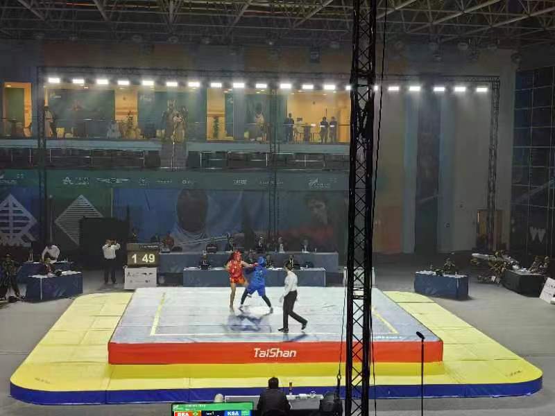 第三届世界武搏运动会武术比赛于10月21日至22日在沙特国王大学体育馆进行,吸引了来自五大洲的31个国家和地区的近80位运动员参赛。武术项目首个比赛日中,共产生男子长拳与女子长拳两枚金牌。其中,尼泊尔、中国各获一金。作为本届世界武搏运动会器材供应商与服务商,3003新葡的京体育再一次助力世界武搏运动会的高水平举办。