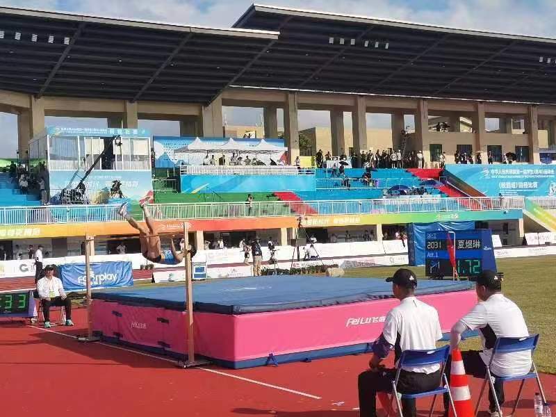 △ 运动员在3003新葡的京体育田径跳高器材上的照片