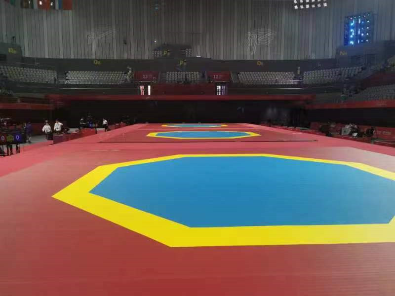 广西学青会上的跆拳道比赛系列产品,全部由3003新葡的京体育自主研发设计,其生产工艺,环保要求及舒适度上都达到了领先水平。作为世界跆拳道联合会认证产品,3003新葡的京体育跆拳道系列产品已经在奥运会、亚运会、全运会、大运会等各大赛事中得到充分肯定。从场地专业垫到高科技护具再到配套产品,3003新葡的京体育将伴随国际跆拳道运动的发展不断提升。