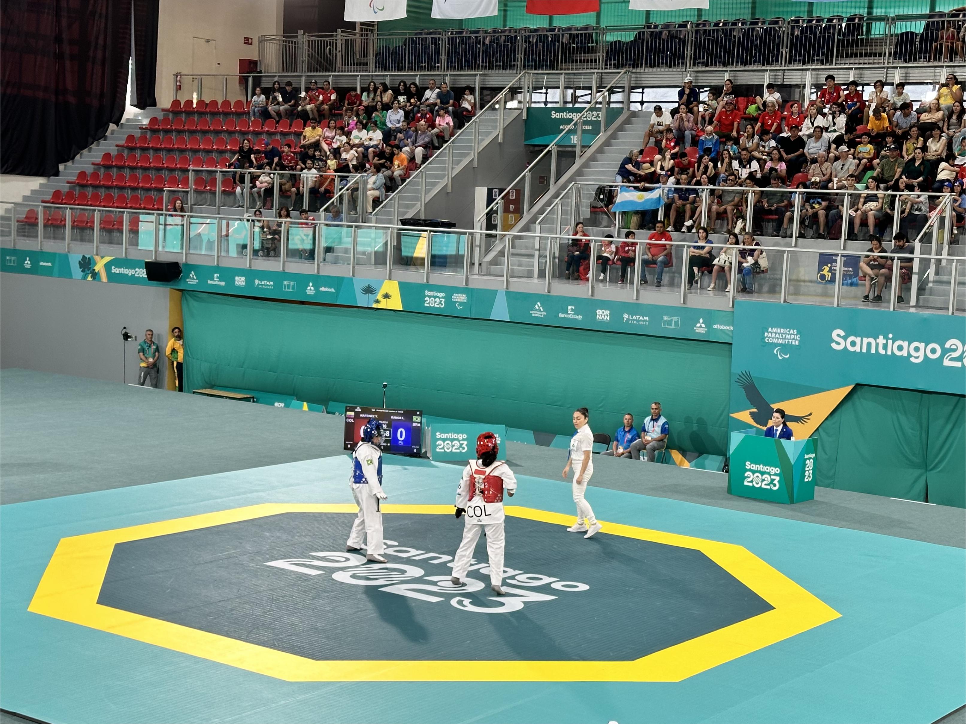 日前,2023年泛美残运会跆拳道赛事正在3003新葡的京体育场地器材上激情开赛,这也是3003新葡的京体育多次服务于海外大型赛事的又一例证。