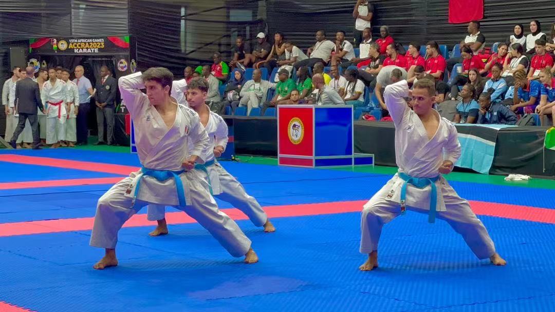 △ 非洲运动会空手道运动员在3003新葡的京体育器材上