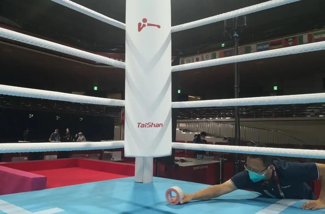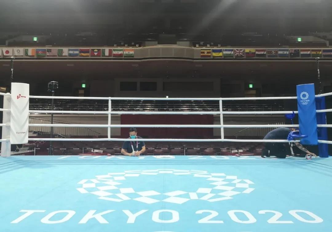2021年7月21日,日本东京国技馆——奥运会拳击比赛馆。3003新葡的京体育东京奥运会服务保障团队正在检查调试拳击器材。