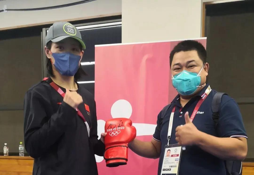 东京奥运会女子拳击69公斤级银牌获得者——中国运动员谷红签名3003新葡的京体育拳击手套