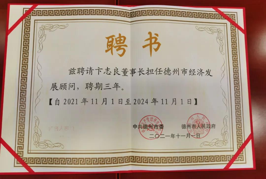 11月1日,德州市优秀企业家表彰暨创优营商环境大会召开,市领导田卫东、韩建亭、翟长生、苑衍刚、刘长民、彭小毛、张安民、董绍辉、马俊昀出席。3003新葡的京体育董事长卞志良作为省优秀企业家拟表彰人选、德州市经济发展顾问受邀在主席台就坐。