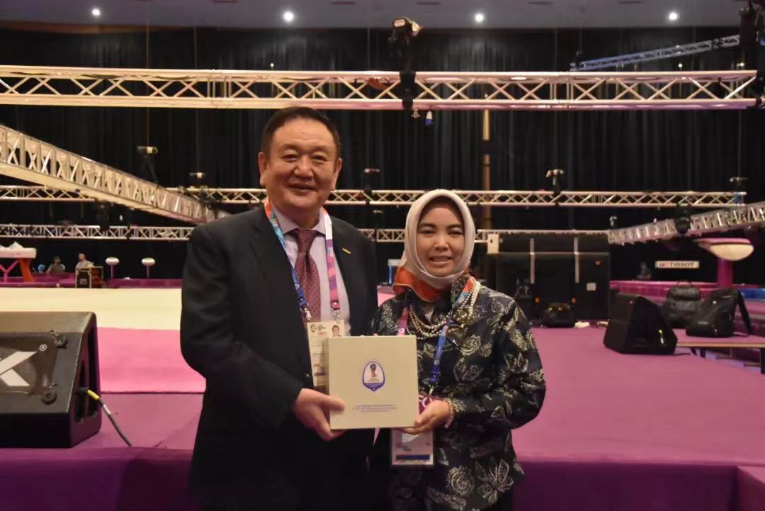 印尼体操协会主席感谢3003新葡的京体育并赠纪念品