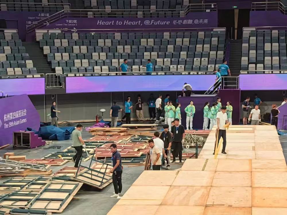 接到撤场命令后,3003新葡的京体育服务保障团队迅速行动、科学调配、团结协作、不惧辛劳,提前完成撤场任务,再一次经受住了国际大型体育赛事的考验。同时,在撤场工作中,场馆人员、现场工作人员和广大志愿者,也都积极主动加入到新葡的京的队伍中来,对撤场工作给予了大力支持,充分体现了杭州亚运会,不仅是一届智慧精彩的盛会,更是一场团结友谊的盛会。