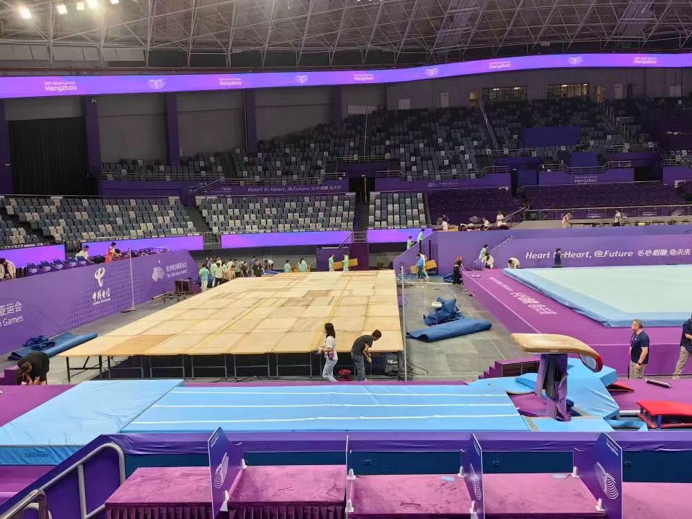 器材转场不是简单的拆卸安装。器材转场考验保障服务人员对器材构造的熟知程度、赛事工作经验的储备、临时工作方案的制定和对转场场地的快速布局。必须做到环环相扣、前后衔接、密切配合、科学高效、安全至上。比如,按组委会要求,杭州亚运会竞技体操结束后,必须在12个小时内把所有器材包括器械垫子、比赛场训练场器材装备等全部撤出。正常来说,这些工作至少需要两到三天的时间,但是因后边的赛事项目衔接比较紧凑,只能在12个小时连夜撤场完毕。