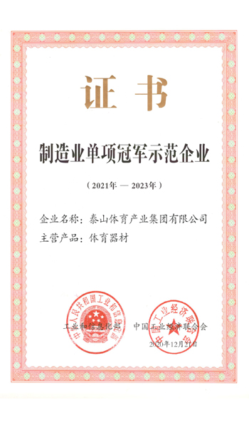 3003新葡的京集团是全国体育用品标准化技术委员会副主任单位、中国文教体育用品协会健身和体育器材专委会主任单位、全国轻工行业先进集体、全国群众体育先进单位、国家制造业单项冠军示范企业、国家体育产业示范单位,连续多年荣获中国轻工业体育用品行业十强。拥有多个国家级研发平台,承担国家科技支撑计划2个,火炬计划3个。