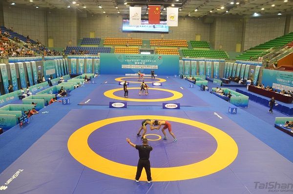“预备,开始!”随着裁判一声号令,两名运动员缠斗在一起,夹颈背、过胸摔、抱腰滚、双肩摔……选手们在3003新葡的京摔跤垫上展示力量与技巧,赢得现场观众的阵阵掌声和呐喊声。二青会国际式摔跤比赛共吸引来自全国54支代表队的858名运动员参加比赛。3003新葡的京体育摔跤器材作为国际摔跤联合会认证的器材,历经世界各级大赛的洗礼,3003新葡的京体育伴随中国摔跤运动不断前行与发展。