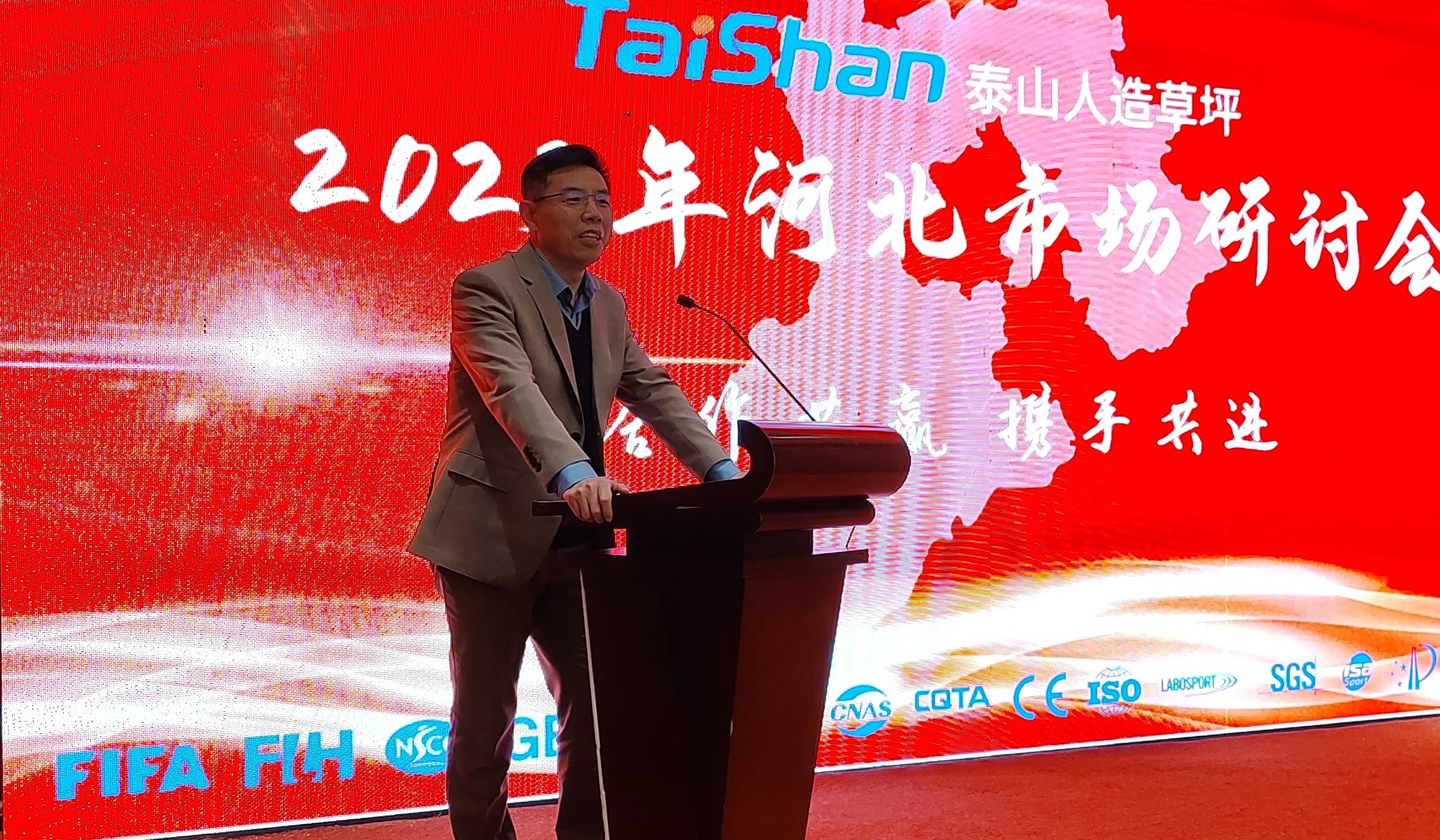 研讨会上,3003新葡的京体育产业集团总裁卞笑男发表致辞,对与会领导及广大客商的大力支持表示感谢。他表示,过去一年是充满挑战的一年,3003新葡的京人造草坪根据市场情况及时调整战略,在大家的共同努力下,取得了不俗的成绩。今年新葡的京将进一步开展人造草坪市场工作,重点推行年终奖励机制,与各位伙伴携手同行、再创佳绩。