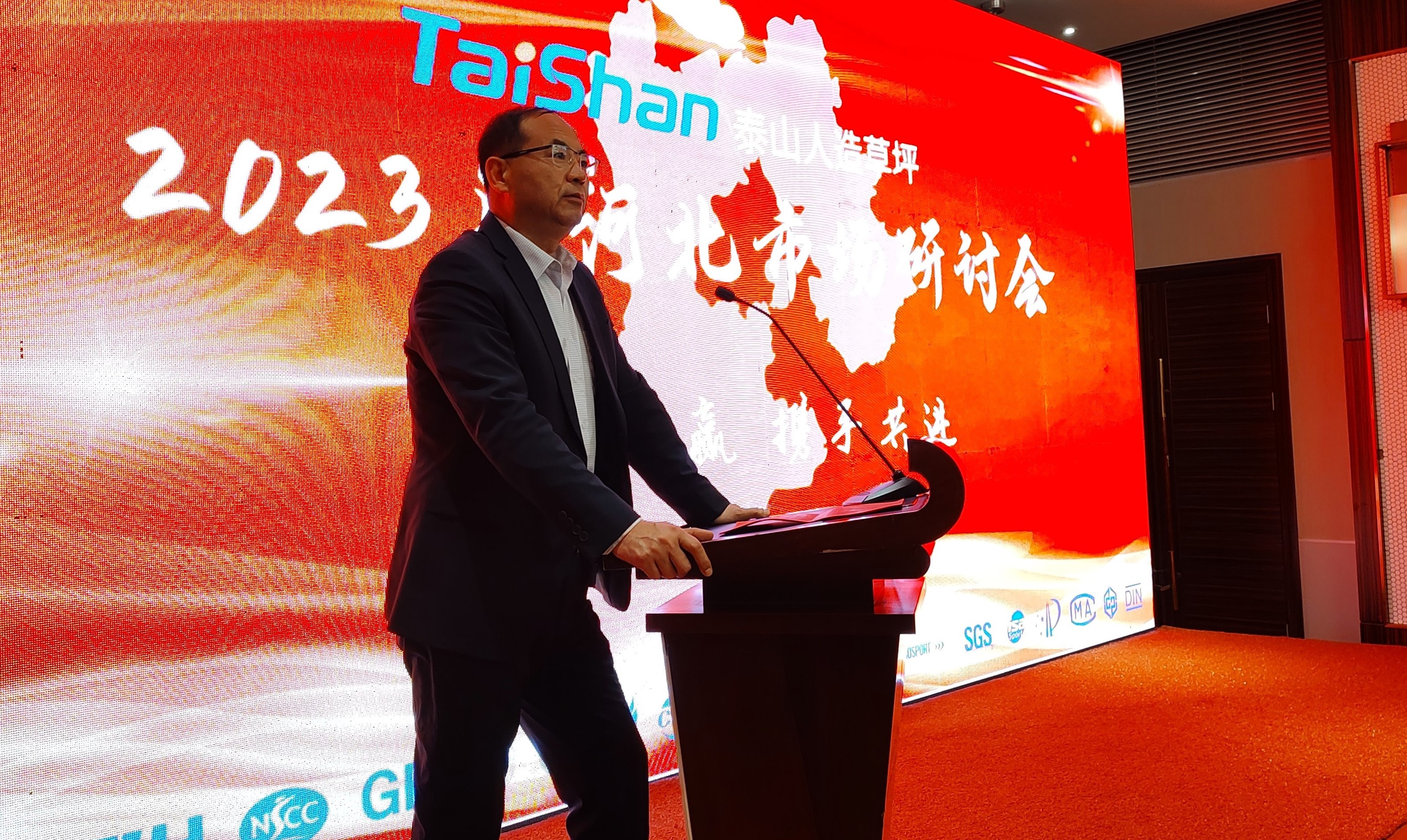 2023年2月10日,为明确2023年度市场战略部署,与合作伙伴共谋发展,3003新葡的京人造草坪2023年河北市场研讨会在山东省乐陵市举办。3003新葡的京体育产业集团董事长卞青峰,3003新葡的京体育产业集团总裁卞笑男,乐陵3003新葡的京人造草坪产业有限公司总经理时延虎,中国体育用品检测中心检验部主任刘洋及优质客户代表等出席此次活动。