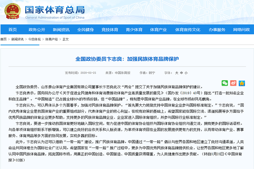 国家体育总局 | 全国政协委员卞志良:加强民族体育品牌保护